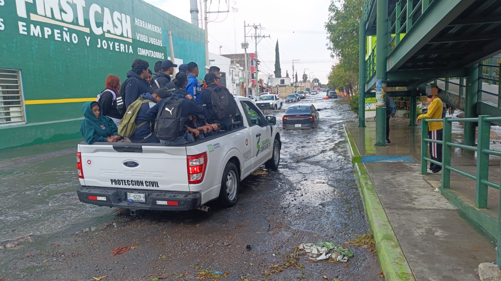 Elementos de la Guardia Civil Municipal de Soledad de Graciano Sánchez brindaron apoyo a la ciudadanía durante las lluvias registradas la tarde de este jueves en la zona metropolitana, realizando labores de auxilio y vigilancia para salvaguardar la integridad de las familias.